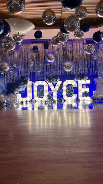 Celebrate six decades of joy with this stunning '60 Shades of Blue' themed birthday party setup! Featuring illuminated marquee letters, chrome silver and navy blue balloon clusters, shimmering silver streamers, and reflective hanging orbs, this dazzling design creates an unforgettable backdrop perfect for milestone celebrations. Designed by My Life In Balloons LLC, serving South Jersey, Philadelphia, and Atlantic City with luxury balloon decor for birthdays, galas, and unforgettable events."