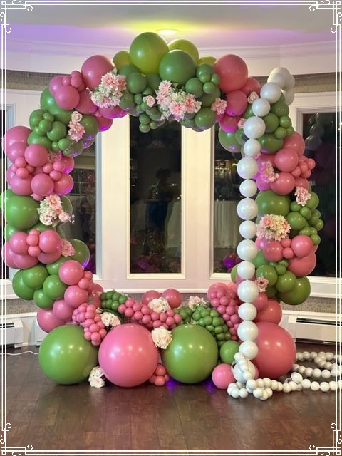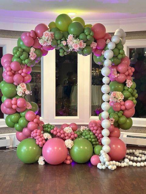 Celebrate in style with this stunning balloon circle arch designed to honor the elegance and tradition of Alpha Kappa Alpha Sorority, Inc. The arch features a beautiful combination of pink and green balloons, reflecting the sorority’s iconic colors and adding a vibrant, yet sophisticated touch to your event.