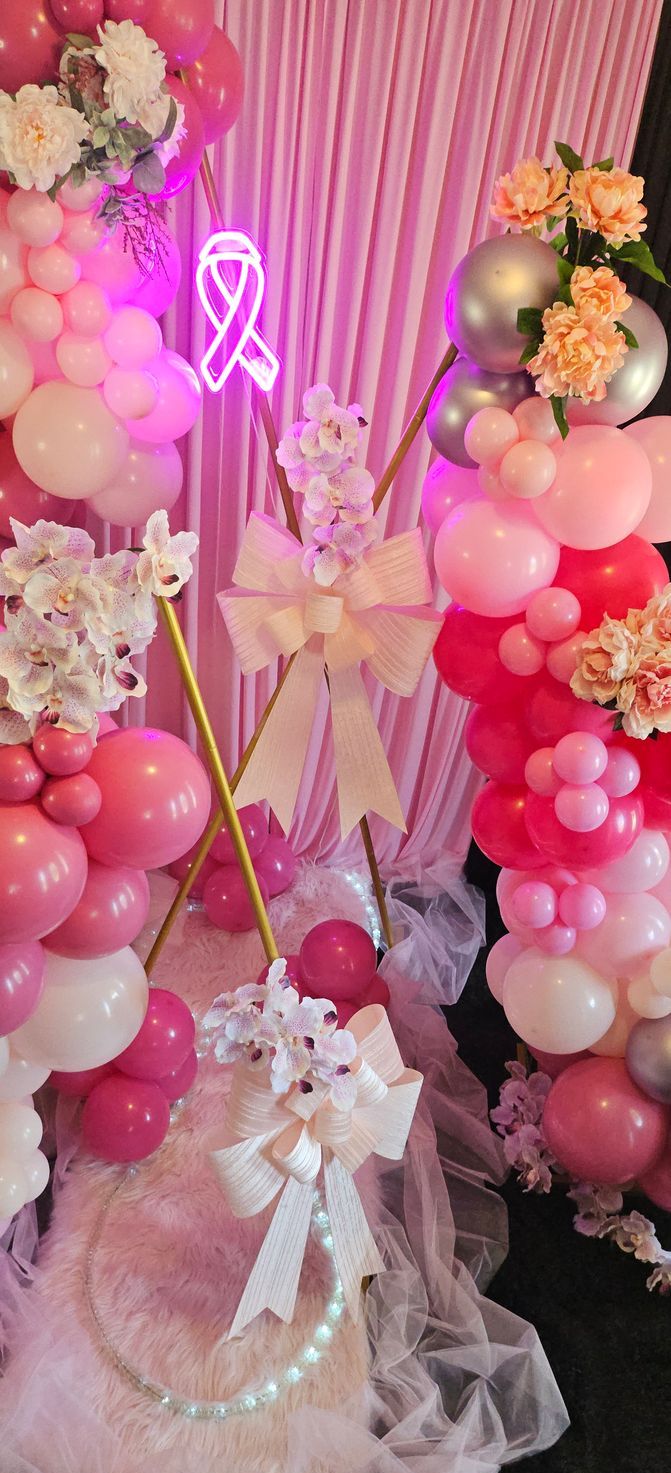 Pink Balloons: Representing sisterhood, love, and friendship, the soft pink balloons bring warmth and grace to the display.