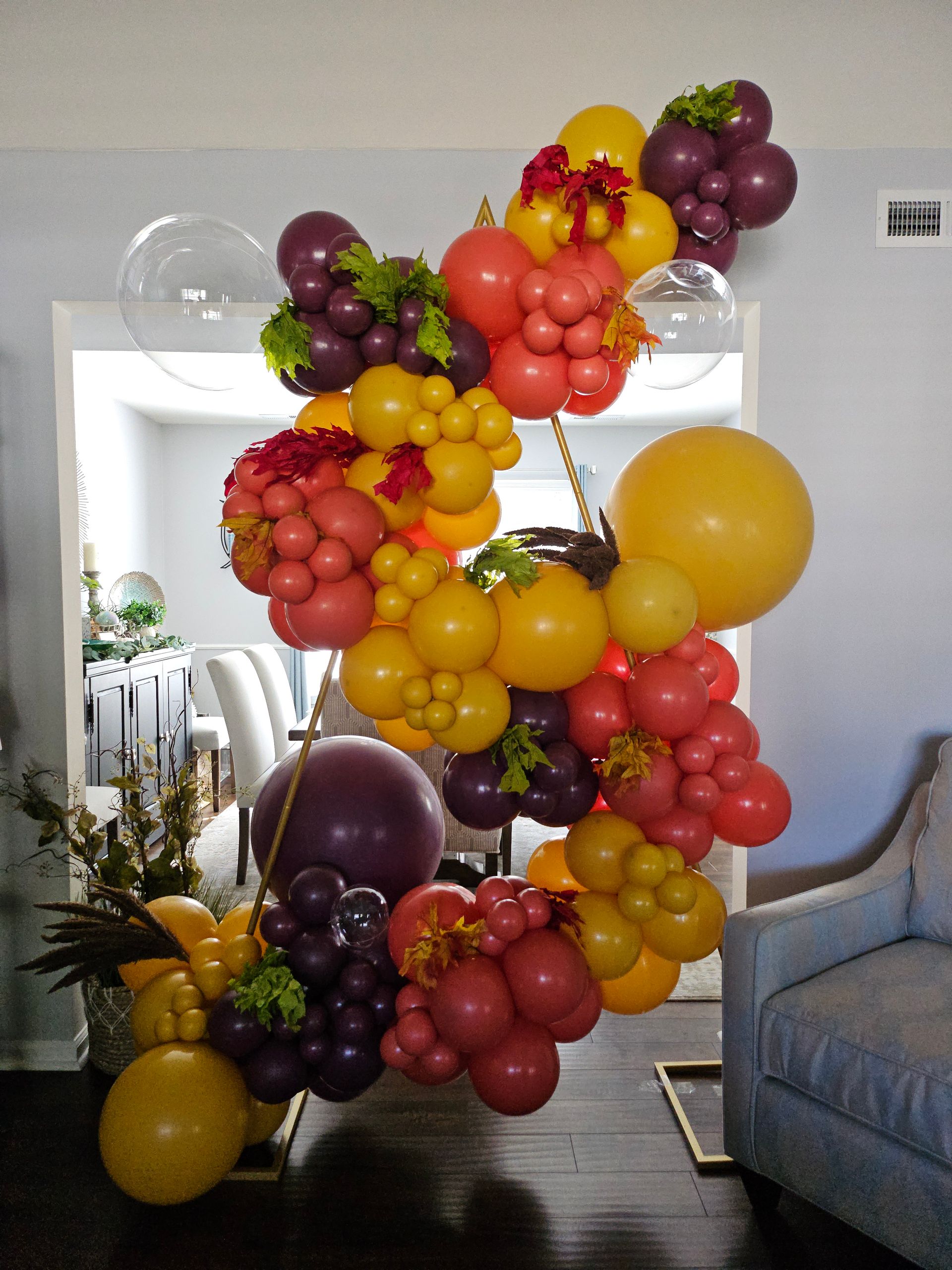 Celebrate in style with this vibrant grape-themed organic balloon tower designed for Project Prom 2025! Featuring rich clusters of mauve, purple, green, yellow, and raspberry pink balloons, this eye-catching display captures the essence of celebration and creativity. Accented with lush greenery and metallic gold balloons, this balloon installation brings a playful and elegant vineyard vibe to any event. Perfect for proms, graduations, and festive gatherings. Created by My Life In Balloons LLC, proudly serving South Jersey, Philadelphia, and Atlantic City with unforgettable balloon decor."