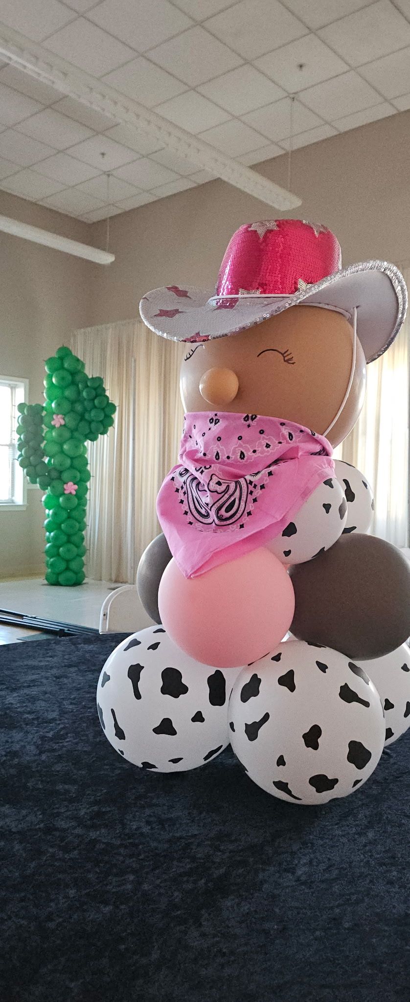 Bring the Wild West to life for your little one's first birthday with this adorable cowgirl-themed balloon setup! Featuring a cow print balloon centerpiece topped with a pink sequin cowgirl hat and matching pink bandana, paired with a whimsical green balloon cactus accented with pink balloon flowers. Perfect for cowgirl-themed birthdays, western baby showers, rodeo events, and farm-style parties. Designed by My Life In Balloons LLC, serving South Jersey, and Atlantic City with creative, unforgettable balloon installations."