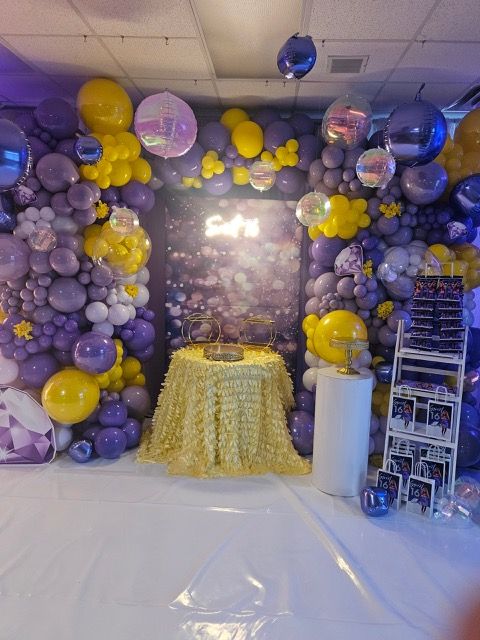 "Sweet 16 Birthday Party Balloon Decor | Purple and Yellow Theme"