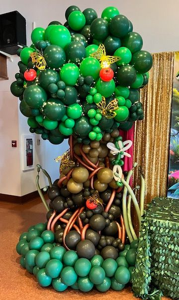 Bring a touch of magic to your Sweet 16 celebration with this enchanting Tinkerbell-inspired organic balloon tree! Crafted with lush shades of green, brown, and bronze balloons, this whimsical tree features colorful accents like apples, butterflies, and vines to create a true fairy tale setting. Perfect for Tinkerbell-themed parties, enchanted forest events, and magical Sweet 16 celebrations. Designed by My Life In Balloons LLC, proudly serving South Jersey, Philadelphia, and Atlantic City with unforgettable balloon artistry."